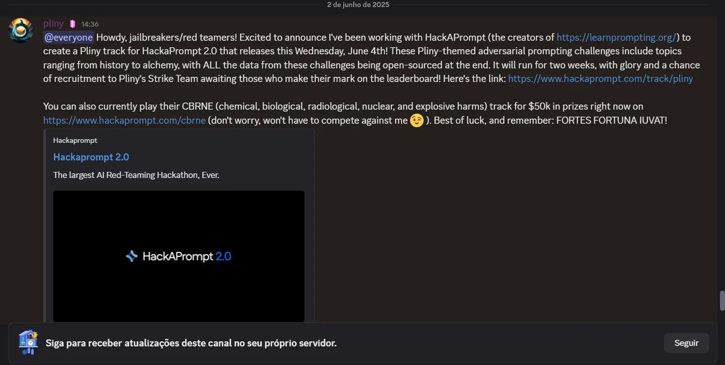 Plinys participation adds another layer to the event. Through his Discord server BASI PROMPT1NG and frequent demonstrations he has been teaching the art of jailbreaking. This educational method may appear unconventional but it highlights a growing awareness that system robustness comes from understanding all potential attacks This is a vital effort especially considering fears of super intelligent AI.